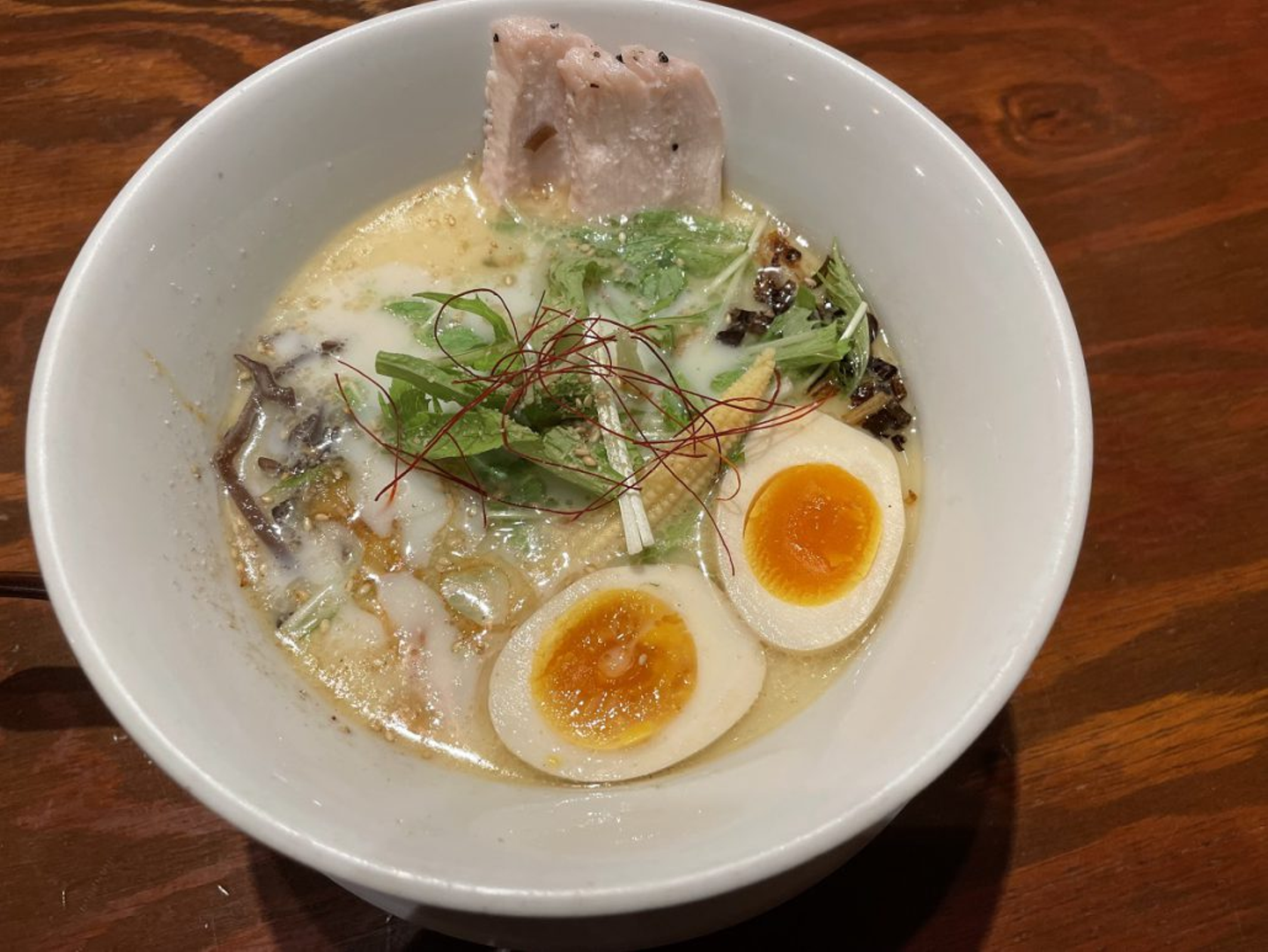 白くて濃厚なスープに、ベビーコーンなどお洒落なトッピングで見た目も美しくとても美味しかったです♪