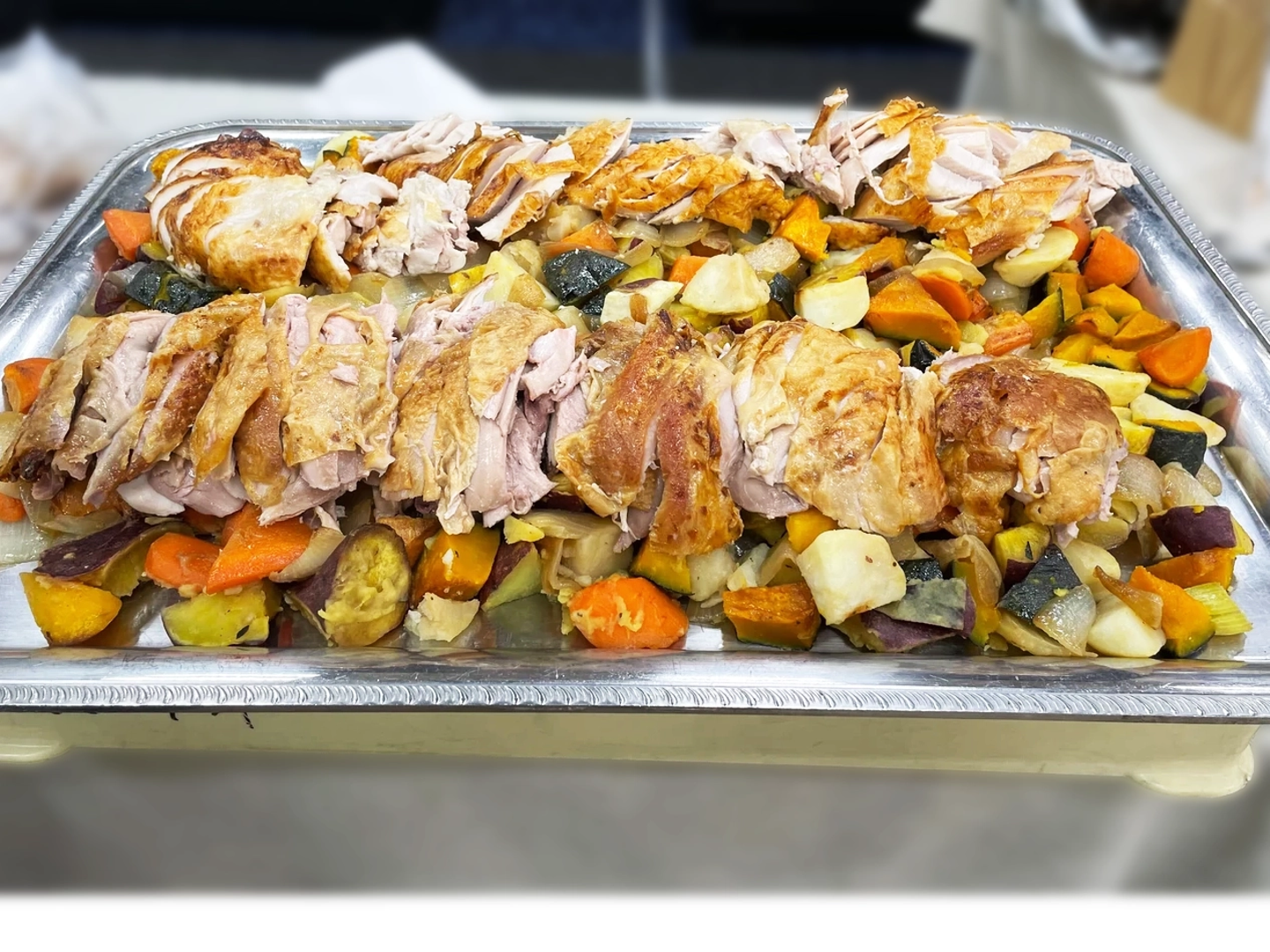 他にも、こんがりと焼き上げられた大きなチキンやクリスマスツリー、雪だるまをイメージした料理が並びました。