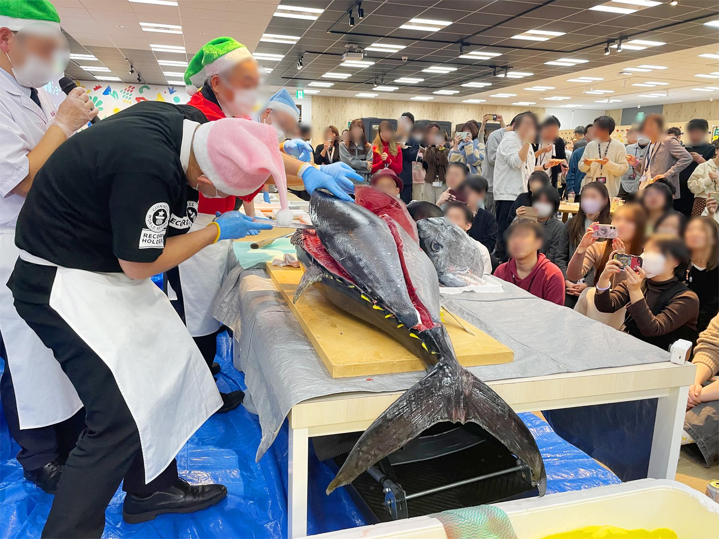プロの職人さんをお招きし、目の前で鮮やかな手つきでマグロがさばかれていく様子に、参加者全員が釘付けになりました。