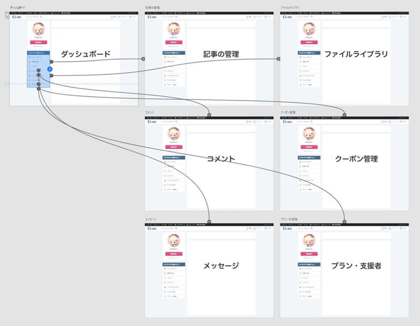 別のぺージのメニューも設定して…