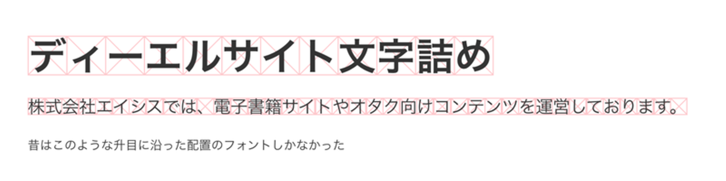 上記のように、元々日本語のフォントは等間隔で升目に沿った原稿用紙のような配置になるよう作られていましたが