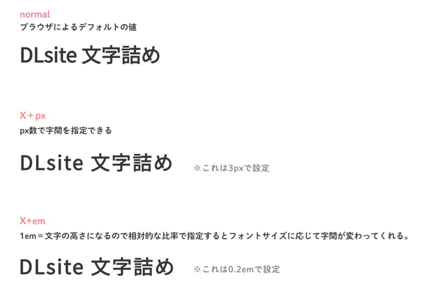 おすすめは数値+emと言われていて、これは1emが文字の高さになるのでフォントサイズに応じて字間が変わってくれる便利な値になります!
