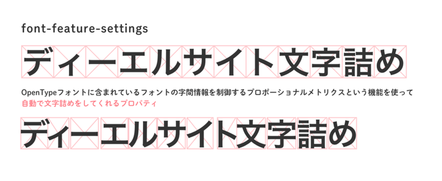特にfont-feature-settingsというプロパティではカーニング用に設定できる方法が何通りもあってめちゃくちゃすごいんです。