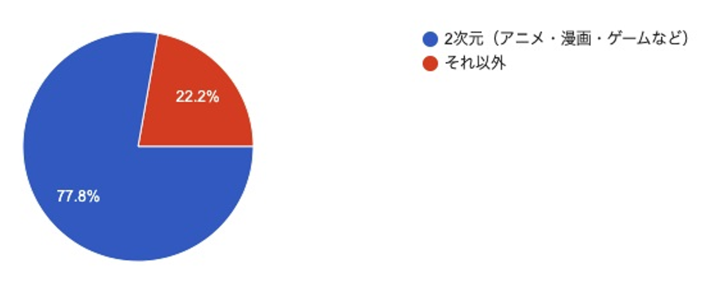 やはり圧倒的に多いのは二次元(アニメ・漫画・ゲームなど)のオタクでした!「それ以外」の選択肢が意外に多いのが気になりますね(笑)