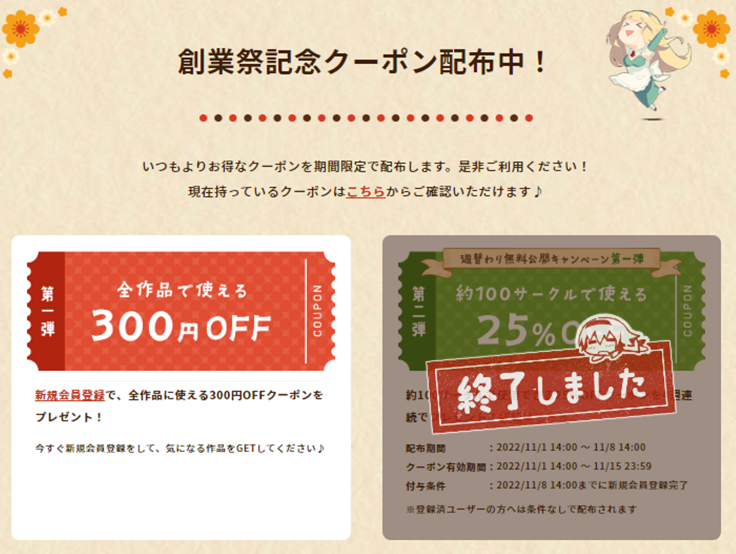 DLsite26周年!『DLsite創業祭2022』が始まりました。記念クーポンをはじめ、作品の無料公開やポイント山分けキャンペーン実施中!ようこそ、DLsite創業祭へ!『DLsite創業祭』特設ページ