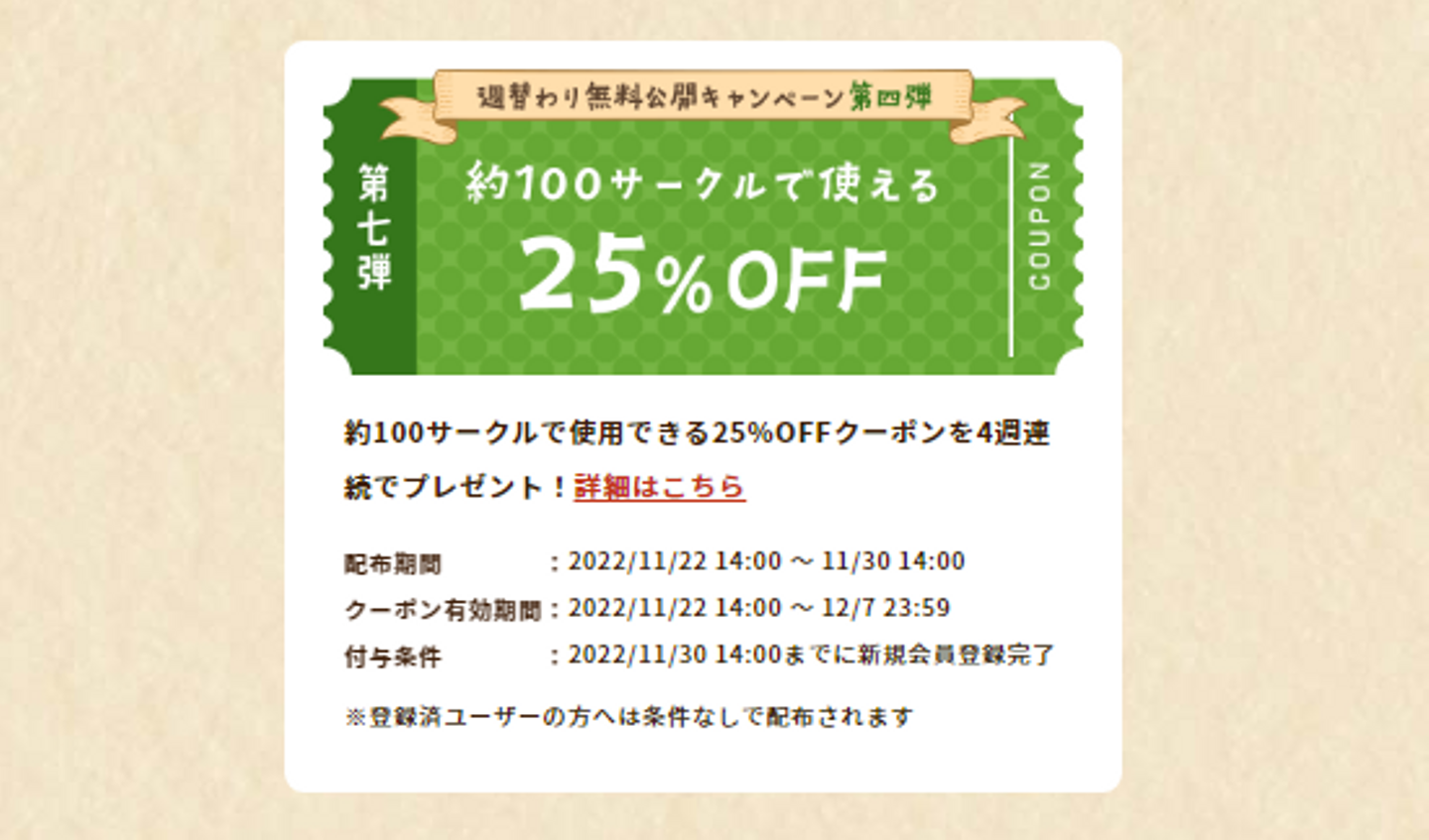 最後の第7弾のクーポンが11/22から始まっています。いよいよラストスパートですね!