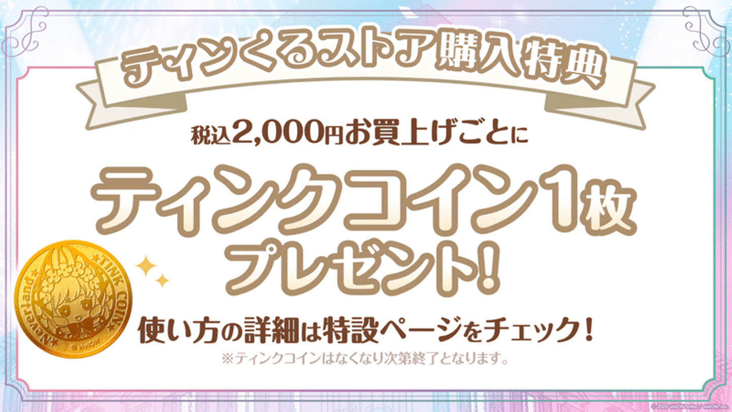 税込2,000円お買上げごとにティンクコイン1枚プレゼント!