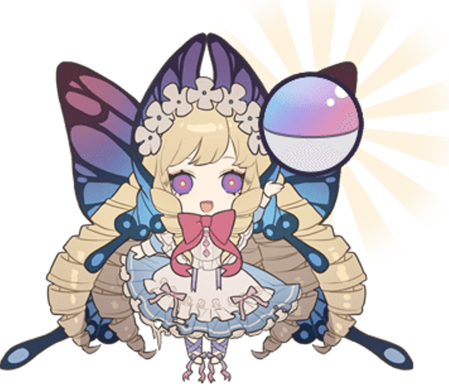 ただ、背景パーツが大きいのでキャラより目立たないよう、部分的に白版の透明度を下げ、且つオーロラのグラデが綺麗に出るよう何度も調整いたしました。