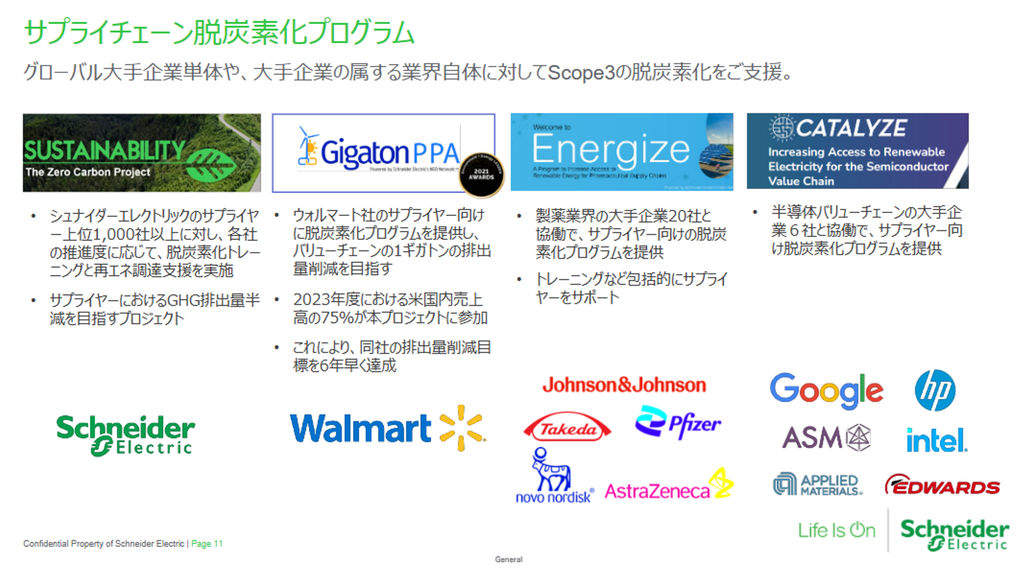シュナイダーのサステナビリティ事業部は日本の製造業を主軸に据えつつ、データセンターや小売業も含む、特にプライム上場企業を主な顧客層とし、彼らのバリューチェーンにおける脱炭素化を最大化するために価値提供をしています。