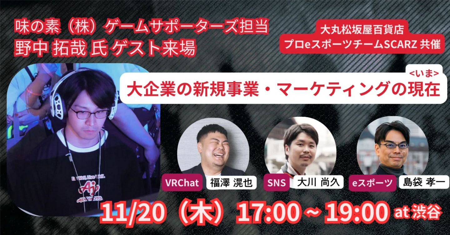 2025年11月20日には、XENOZのオフィス(渋谷)にて、グループ会社である大丸松坂屋百貨店&プロeスポーツチームSCARZとの共催で「大企業の新規事業・マーケティングの現在(いま)」というテーマでセミナーを開催しました。