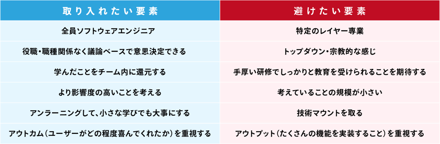 星野:身内ノリで盛り上がっているようなチームになるのは避けたいです。そうなると、徐々に組織が縮小していくんですよね。私は普段から意識的に、そういう空気のチームにならないように気をつけています。それを踏まえて、取り入れたい文化のなかに「アンラーニングして」というフレーズが入っているのが私はすごくいいなと思っています。
