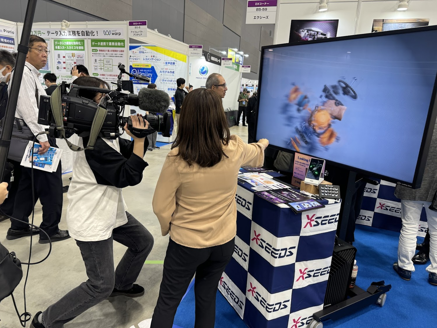 マリンメッセ福岡で開催された今回の展示会。なんと606社もの出展の中から、エクシーズのXR技術が在福テレビ局2局から取材されました!