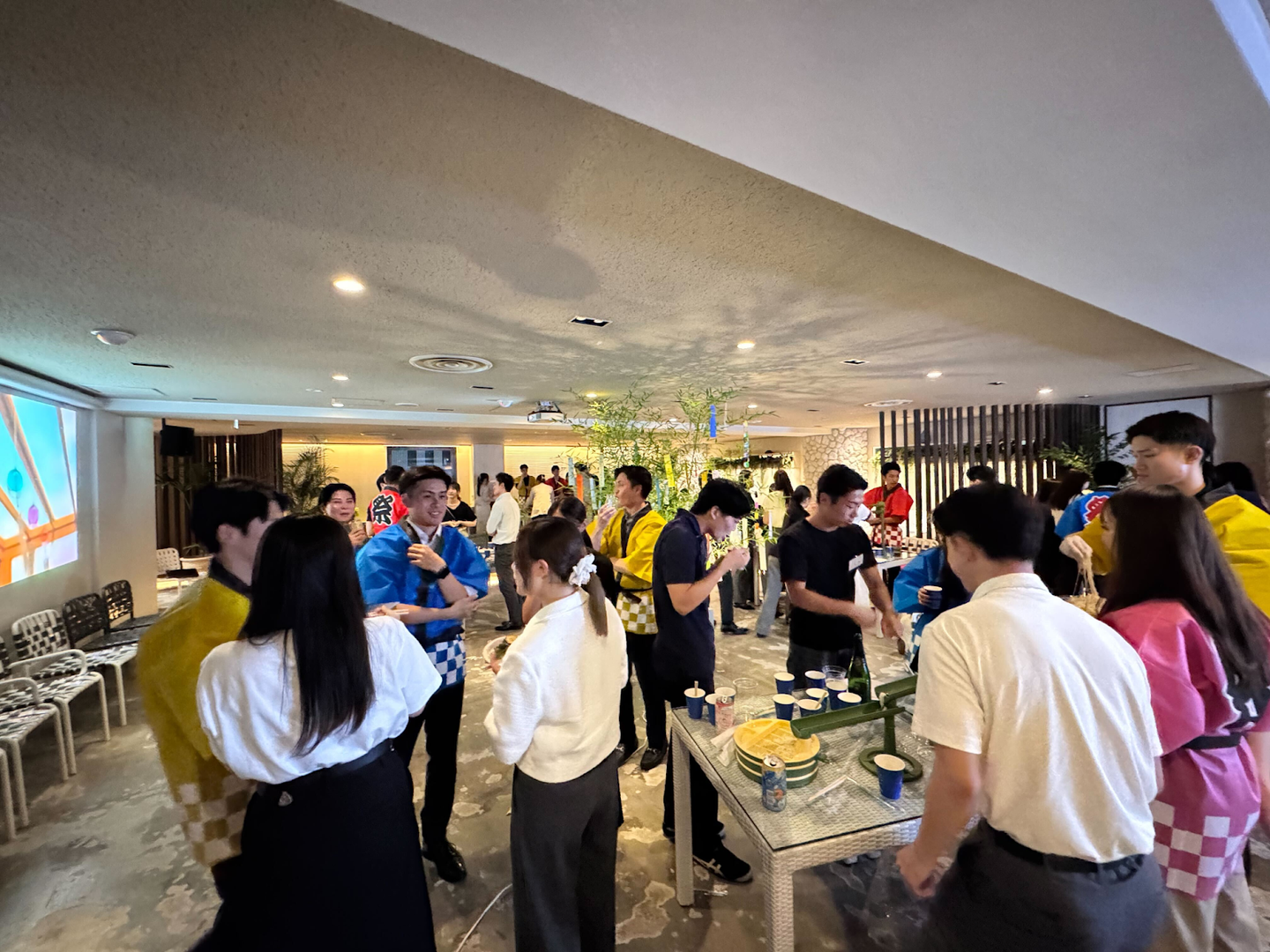 仕事終わりの社員たちが自然と集まる、お祭りムードな空間が広がっていました。