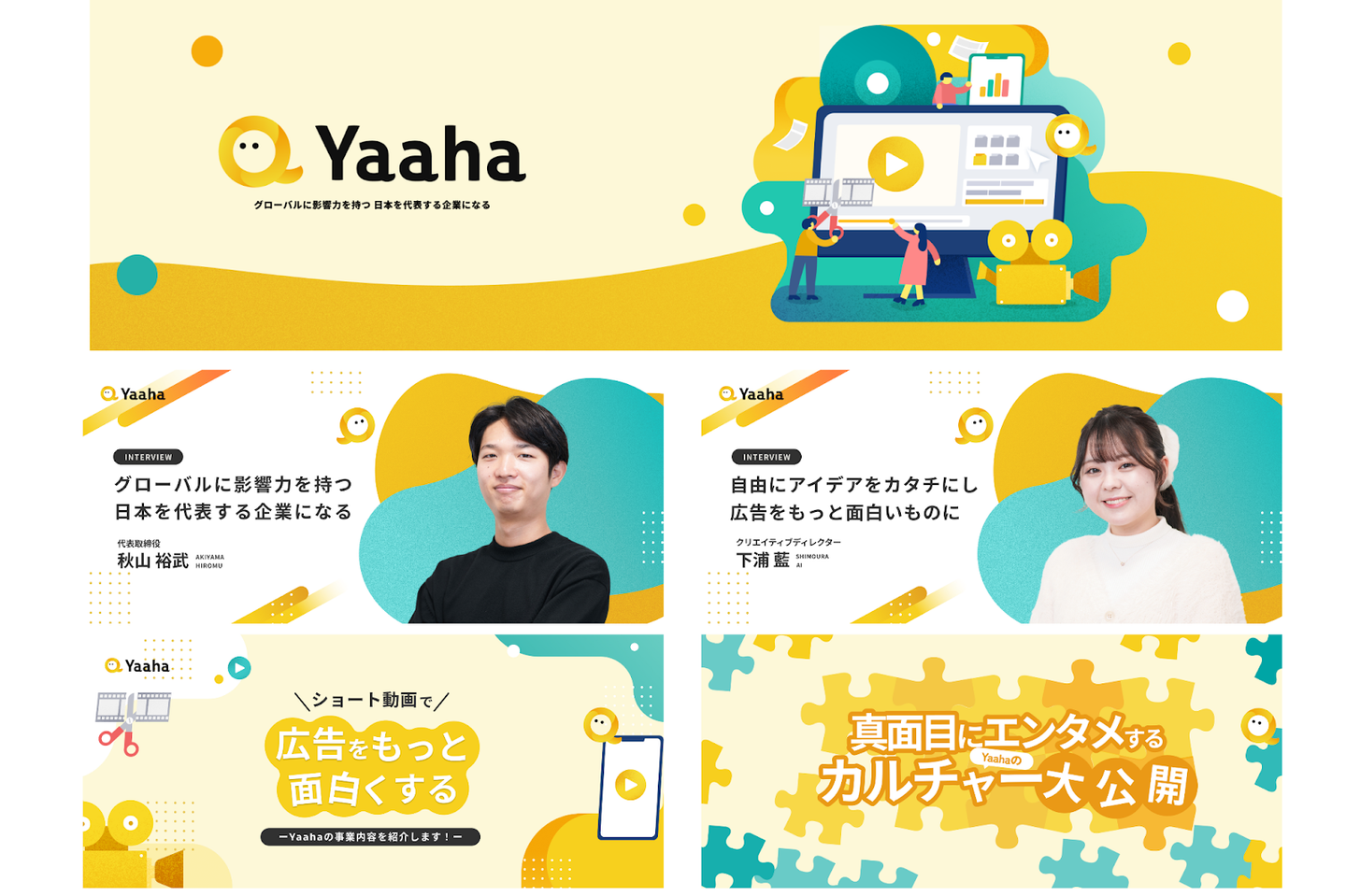 デザイン面でも「真剣だけど、楽しい」Yaahaの「真剣だけど、楽しい雰囲気」が伝わるよう工夫。コーポレートサイト(HP)とデザインのトーンを連動させ、Yaahaというブランドの一貫性にもこだわりました!