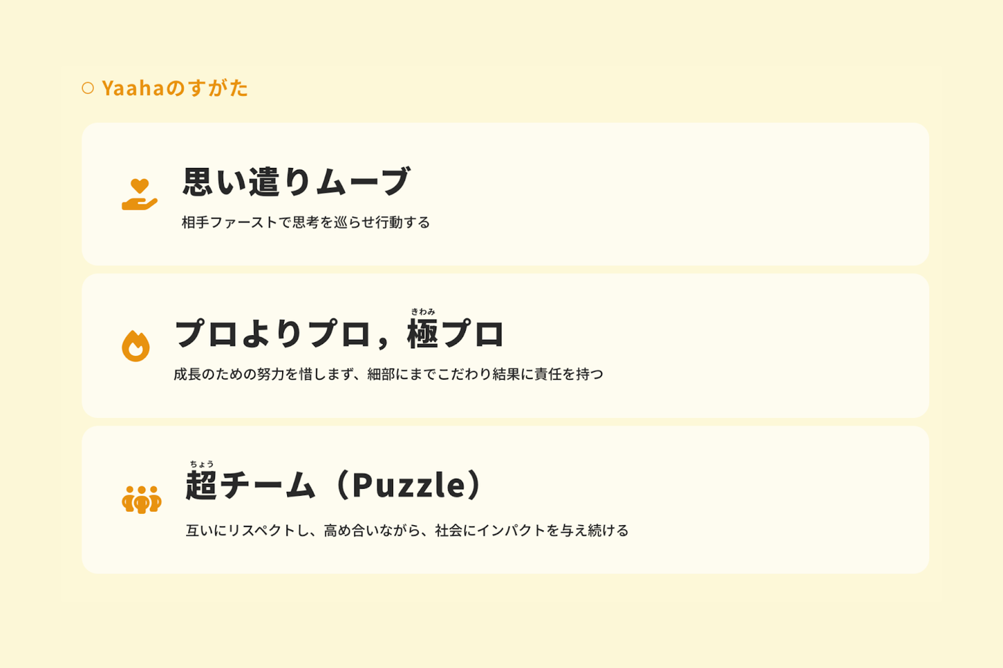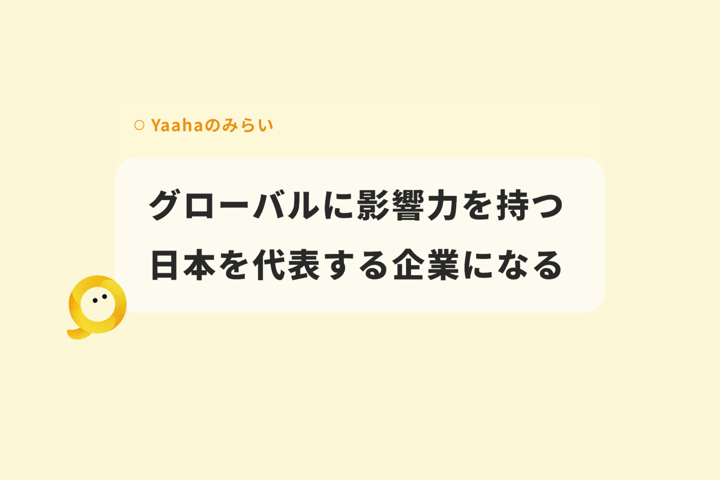 そして、この先、日本の未来を担っていけるのは、Yaahaのような若くて勢いのあるチームだと思っています。だからこそ、本気で「グローバルに影響力を持つ企業になる」という夢を追いかけるために【Yaahaのみらい】を掲げました。
