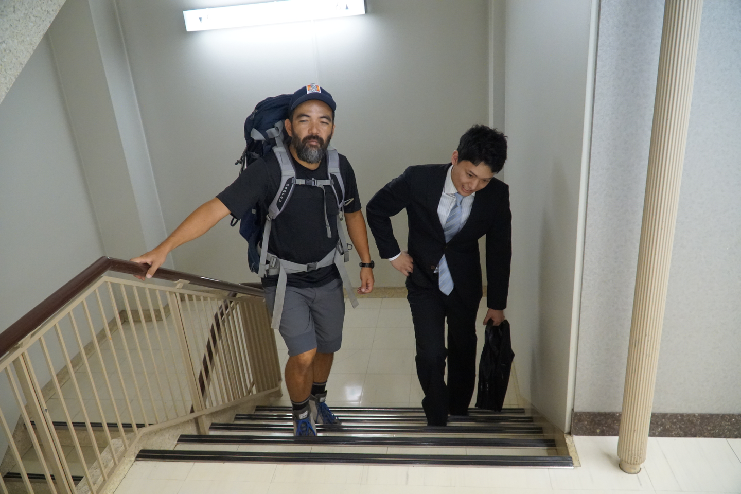前田さん「せっかくなので、登山に見たてて階段でいきます」