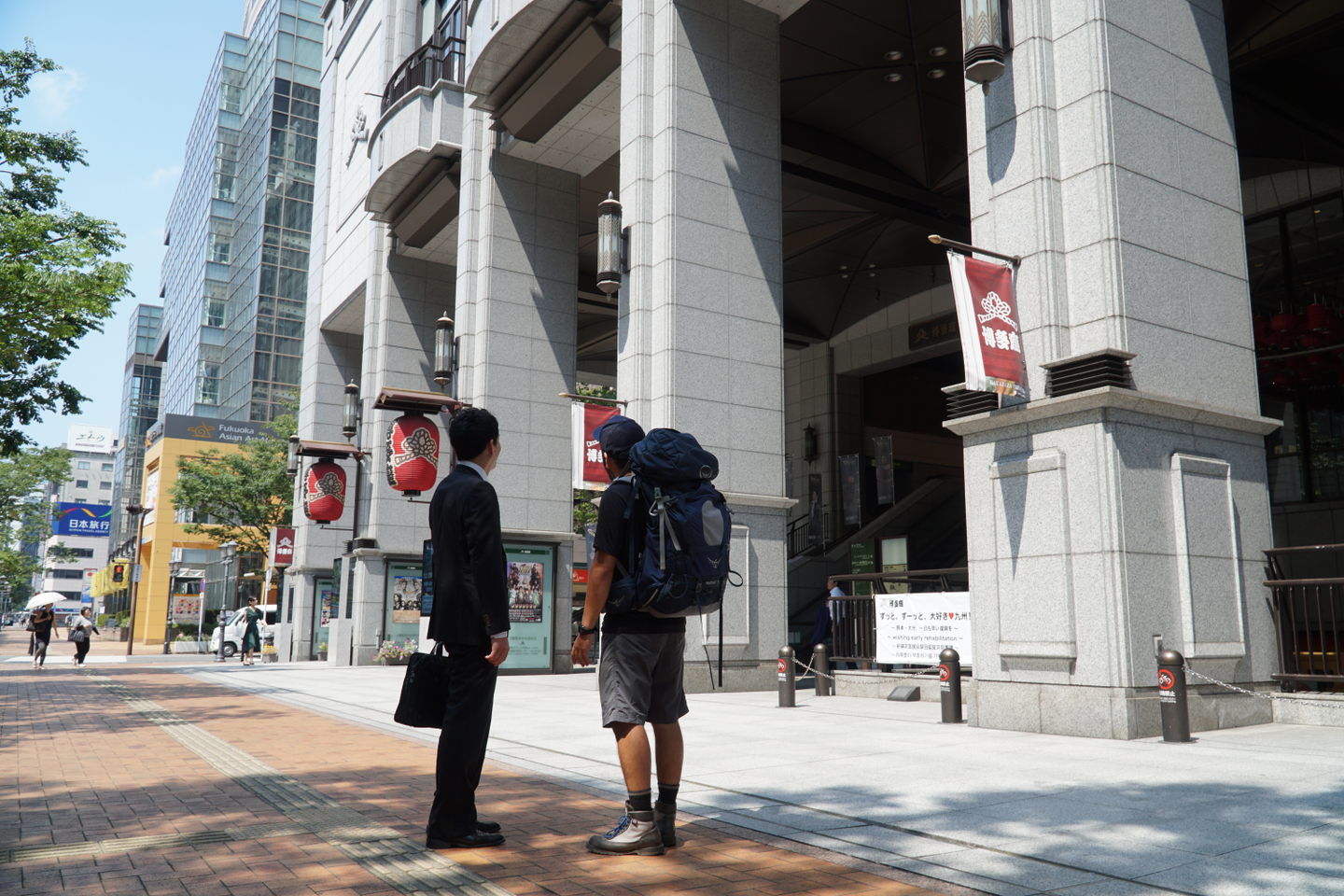 地下鉄改札から地上に出ると福岡の演劇場「博多座」が目の前に。