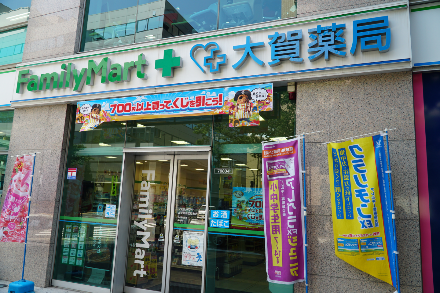 一番近いのは、会社の目の前のファミマです。ローソンとセブンも徒歩圏内にありますし、少し歩いたところにデイリーヤマザキもあります。