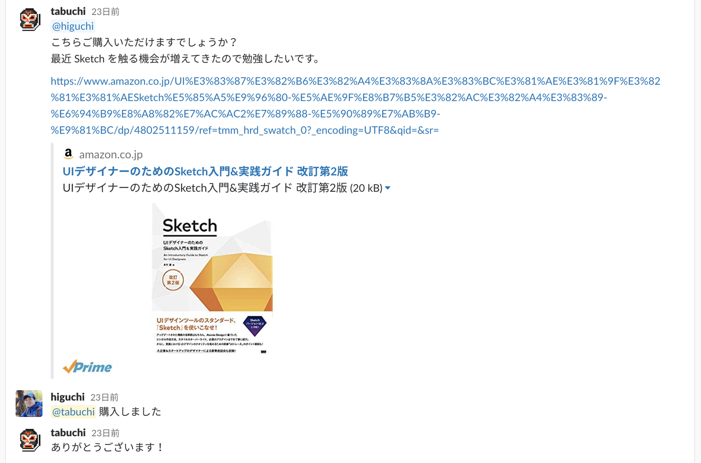 欲しい書籍のURLをSlackに貼り付けて依頼すると、後日届く仕組みです。簡単ですね。