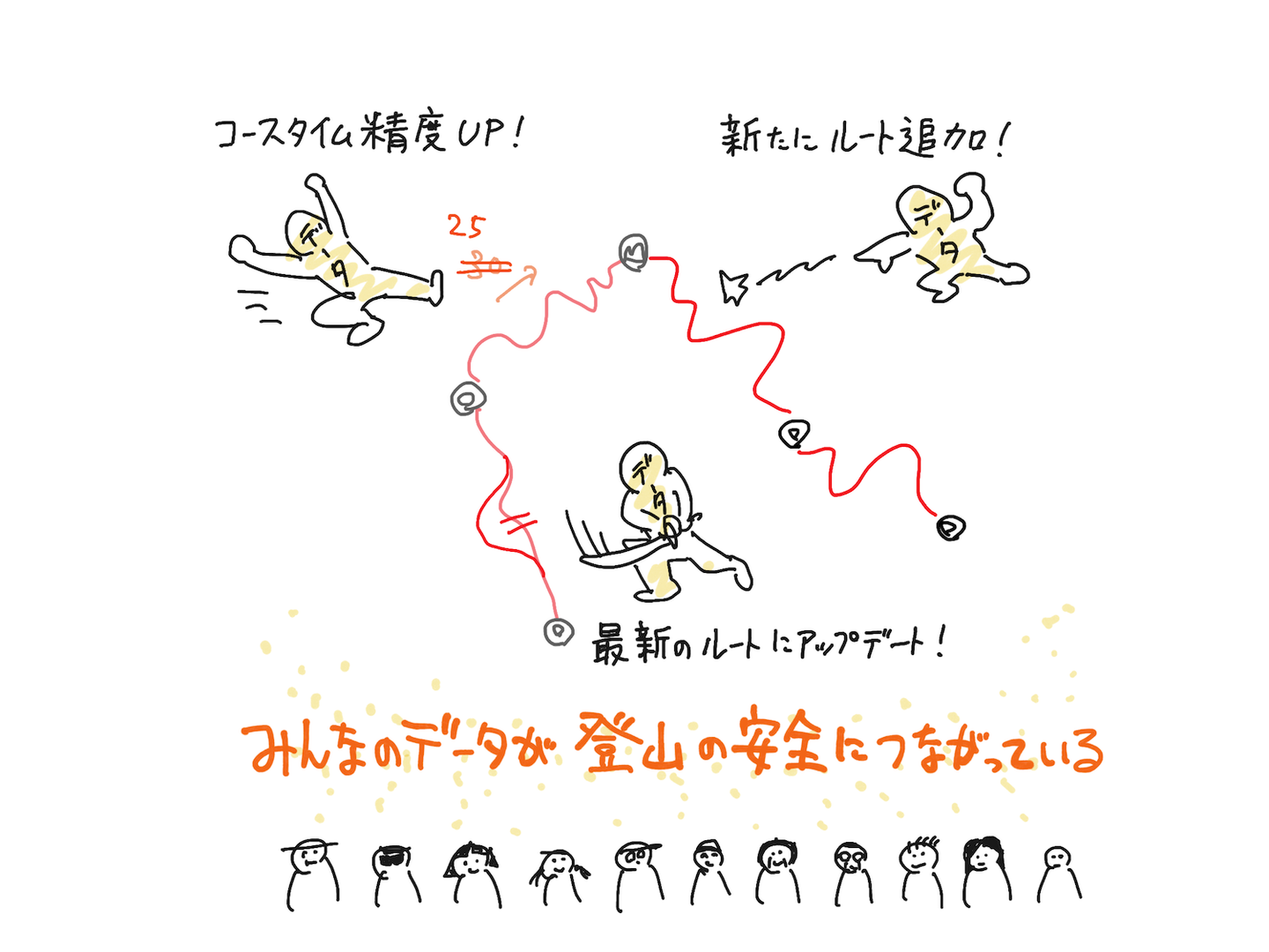 登山道抽出システムの始動は、未来への第一歩。「現代版・伊能忠敬」将来像イメージ(作画・YAMAP分析チーム 松本)