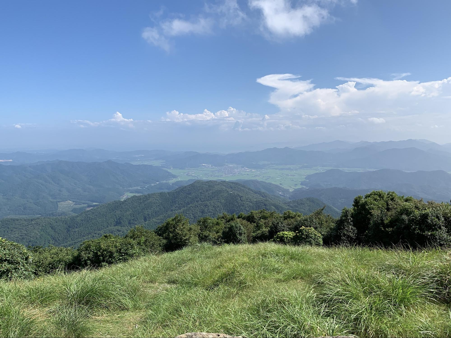 華山山頂からの景色。日本海、玄海灘、瀬戸内海を一望できる