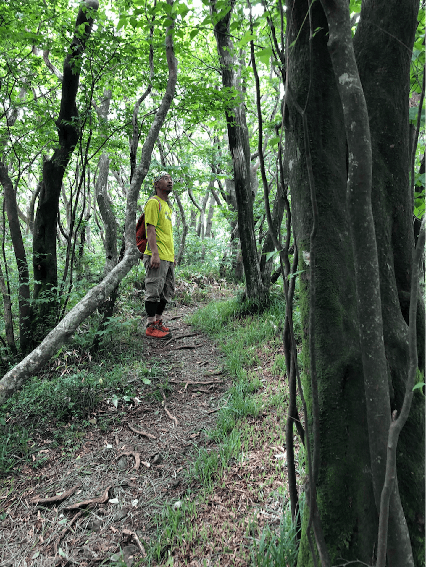 初夏の井原山にて。道中、鳥のさえずりに耳を傾ける斎藤