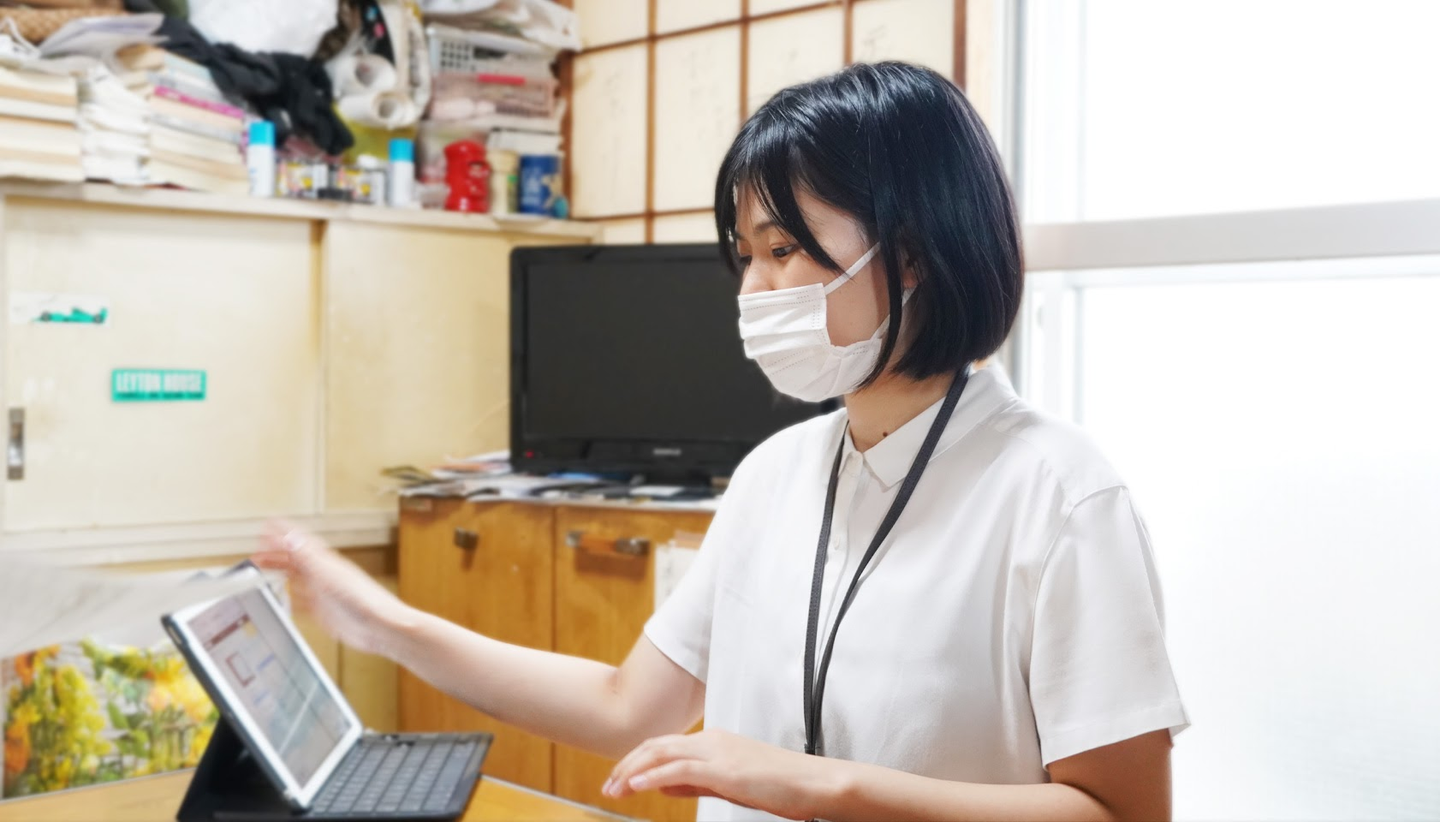 1つ目は「医師のアシスト」 です。当院の訪問診療では、医師1名・在宅医療PA 2名の計3名で、1日約10件の患者さまのご自宅を訪問します。それに伴い、車の運転や、体温・血圧・採血・点滴などに必要な器具の準備、診療レポートの作成、診療中の会話内容の記録などを行ない、医師が診療に専念できるようアシストします。