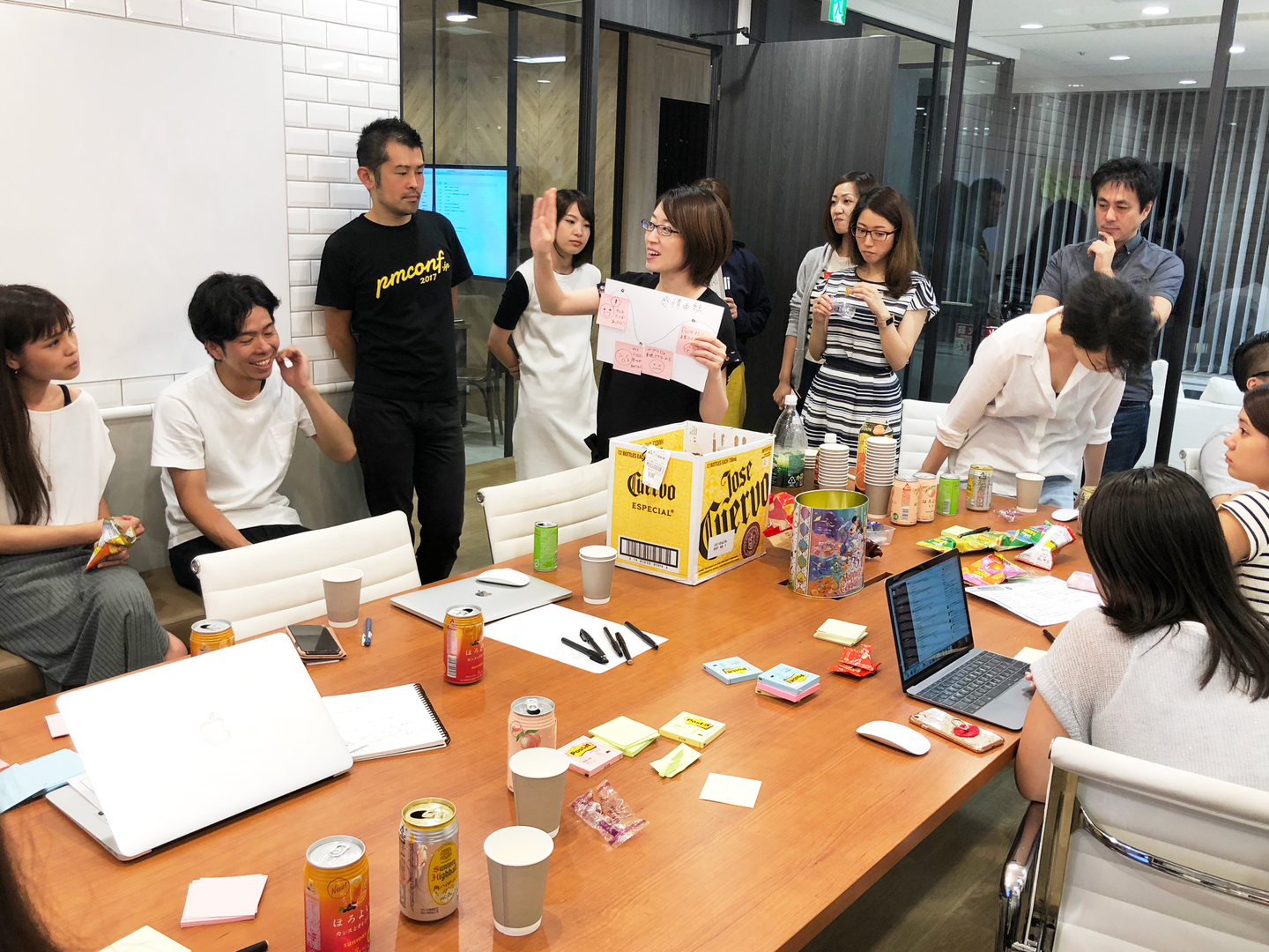 このワークショップで一番驚いたのは全職種から参加者が集まったことです。営業もマーケも人事もデザイナーも一緒になって1つのことに取り組める会社はなかなかないのではないでしょうか。