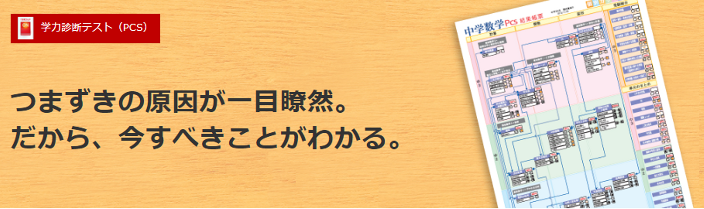 学力診断テスト(PCS)は、お子さまの学力を客観的に把握し、効果的な個別カリキュラムを作成するためのシステムです。スクールIEでは講師のカンや思い込みではなく、学力診断テスト(PCS)を活用してお子さまの学力を“見える化”。「つまずきの原因」に沿ったカリキュラムを組むことで、理解できていないところまでさかのぼり効率的に成績アップへとつなげます。