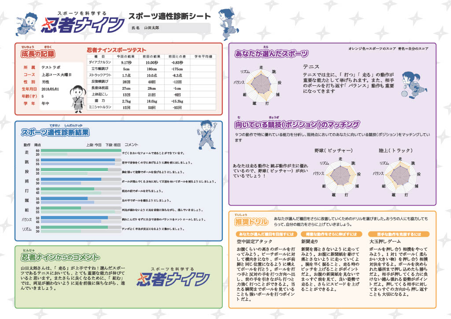 忍者ナインには、子どもの運動能力を“見える化”するツール「適性ナビ」があります。