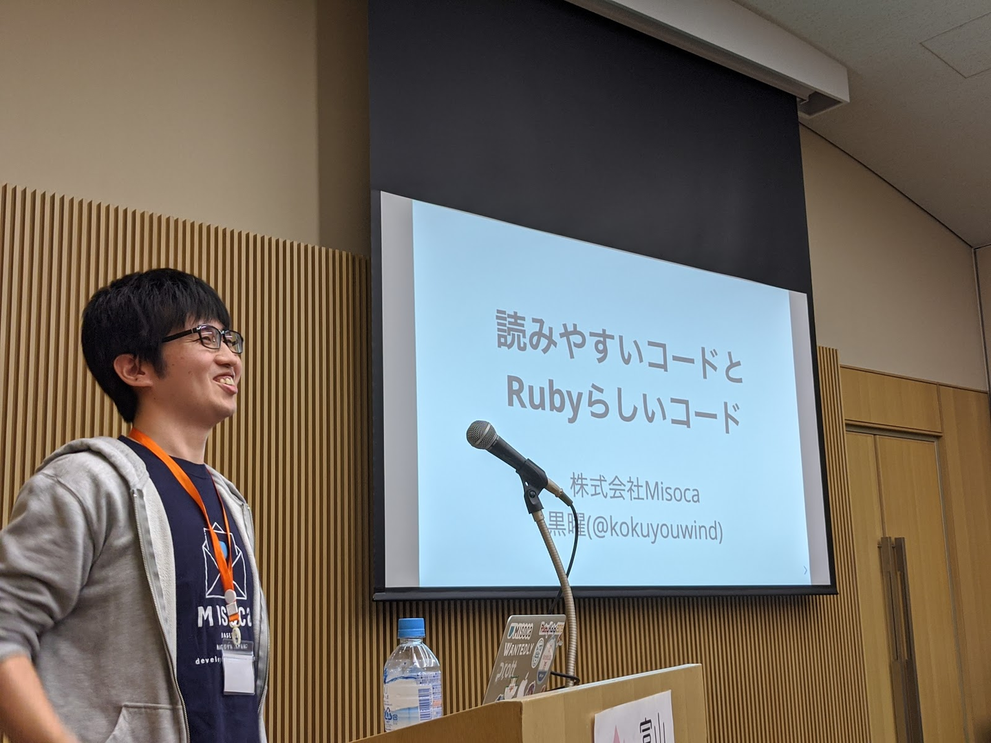 黒曜の発表タイトルは「読みやすいコードとRubyらしいコード」。