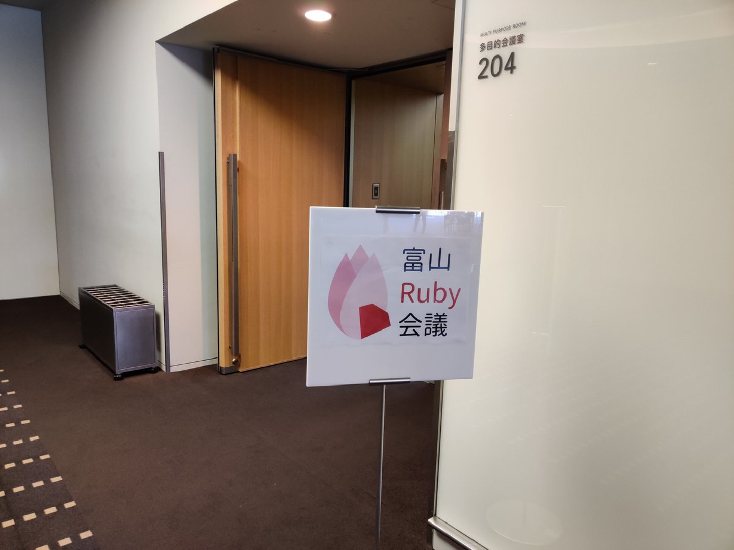 会場入口へ行くと、参加者にはお馴染みの「富山Ruby会議」のロゴが出迎えてくれます。