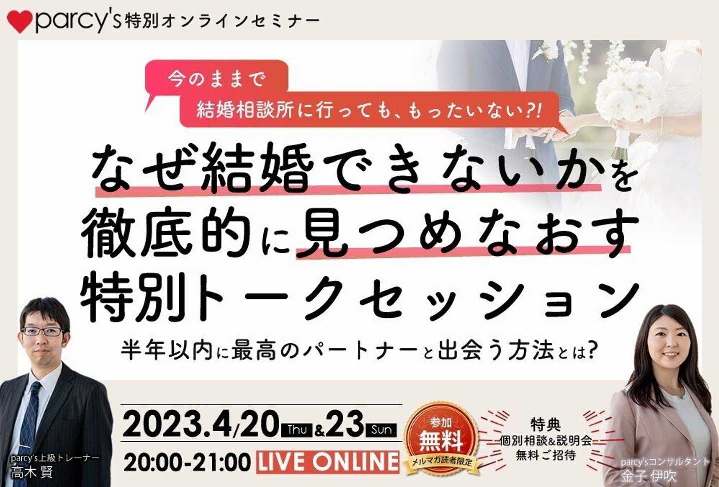 parcy'sオンラインセミナー『なぜ結婚できないかを徹底的に見つめなおす』特別トークセッション