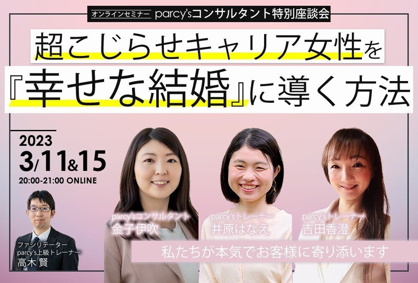 オンラインセミナー parcy’sコンサルタント特別座談会 超こじらせキャリア女性を『幸せな結婚』に導く方法