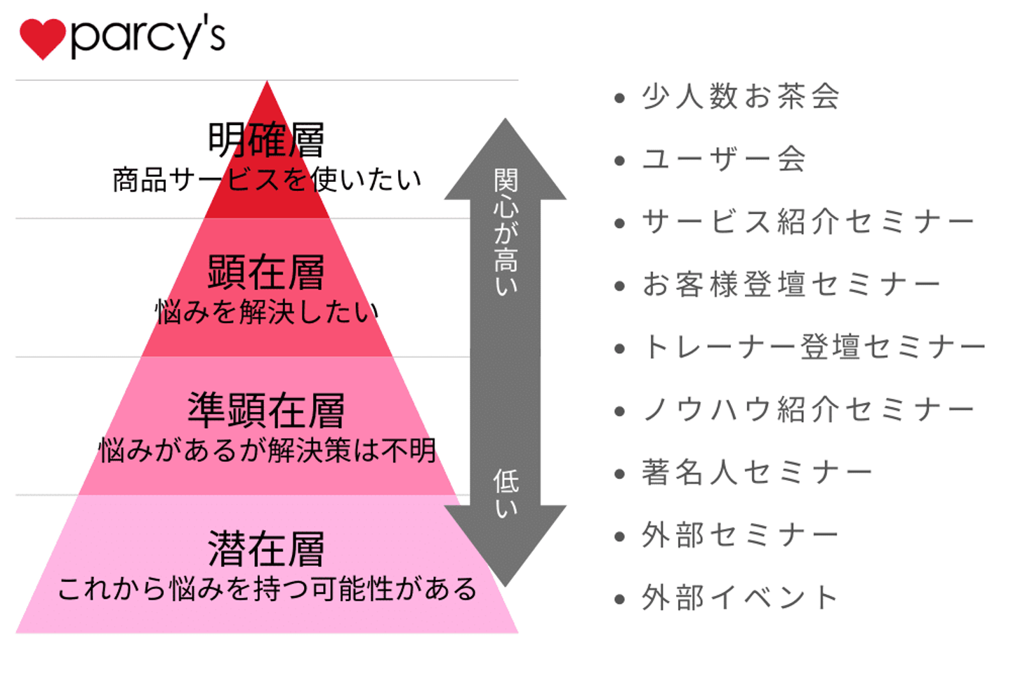 お客様のparcy'sの関心度に合わせてセミナーをしていくことで