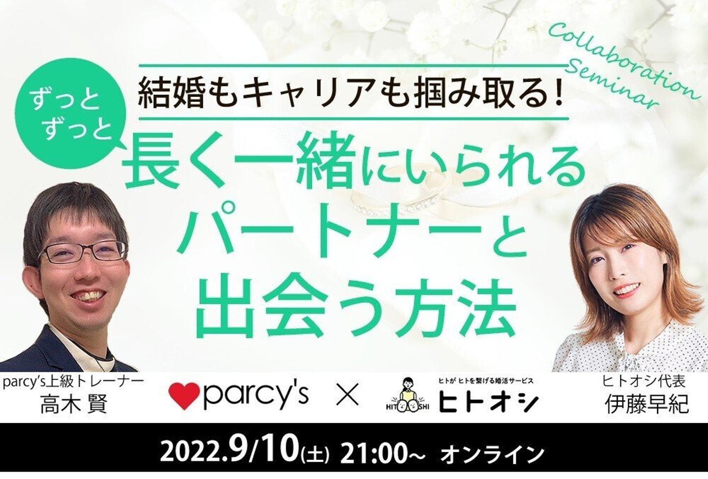 「parcy’s×ヒトオシ」コラボセミナー『結婚とキャリアをつかみとり、ずっとずっと長く一緒にいるパートナーと出会う方法』