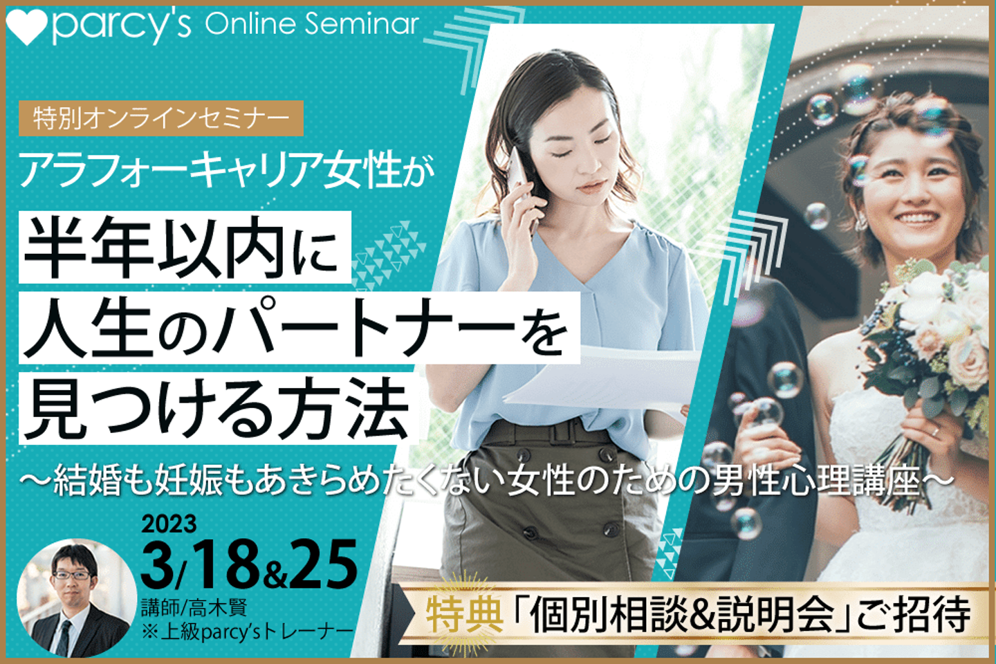 parcy’sオンラインセミナー『アラフォーキャリア女性が 半年以内に人生のパートナーを見つける方法』