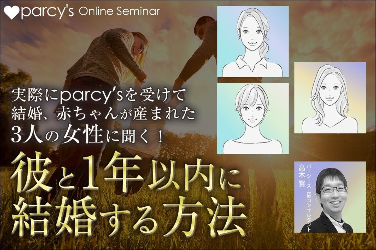 parcy’sオンラインセミナー 『実際にparcy’sを受けて結婚して赤ちゃんが産まれた3人の女性に聞く! 「彼と1年以内に結婚する方法」』