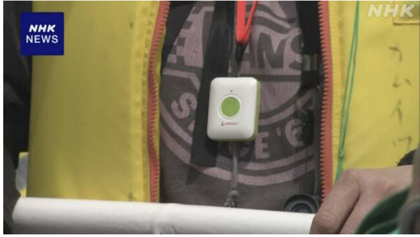 この端末は、緊急時にボタンを押すと、GPS機能を使ってあらかじめ登録したほかの事業者や漁船に位置情報を知らせることができるということで、乗客は首から端末を提げて出港しました。