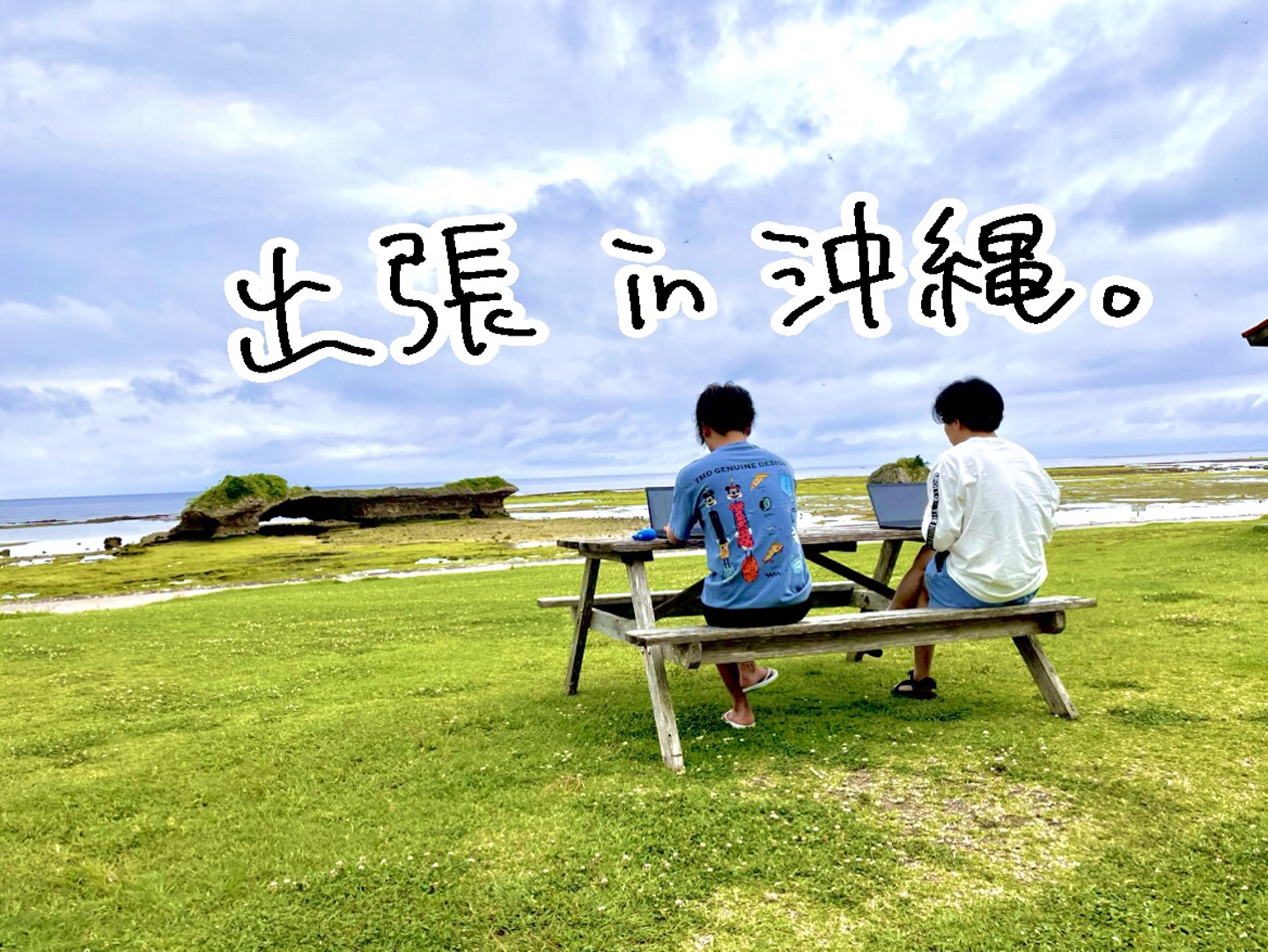 Yogibo Storeは全国で展開しているので、北は北海道から南は沖縄まで、様々な地域に足を運ぶことができます。写真は沖縄出張に行った際に、草原でリモート会議に参加している様子です。
