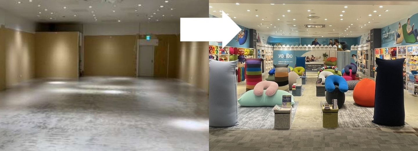 大まかにではありますが、Yogibo Storeは概ねこのような流れを経て、皆さんのお住まいの地域に日々出店しています。