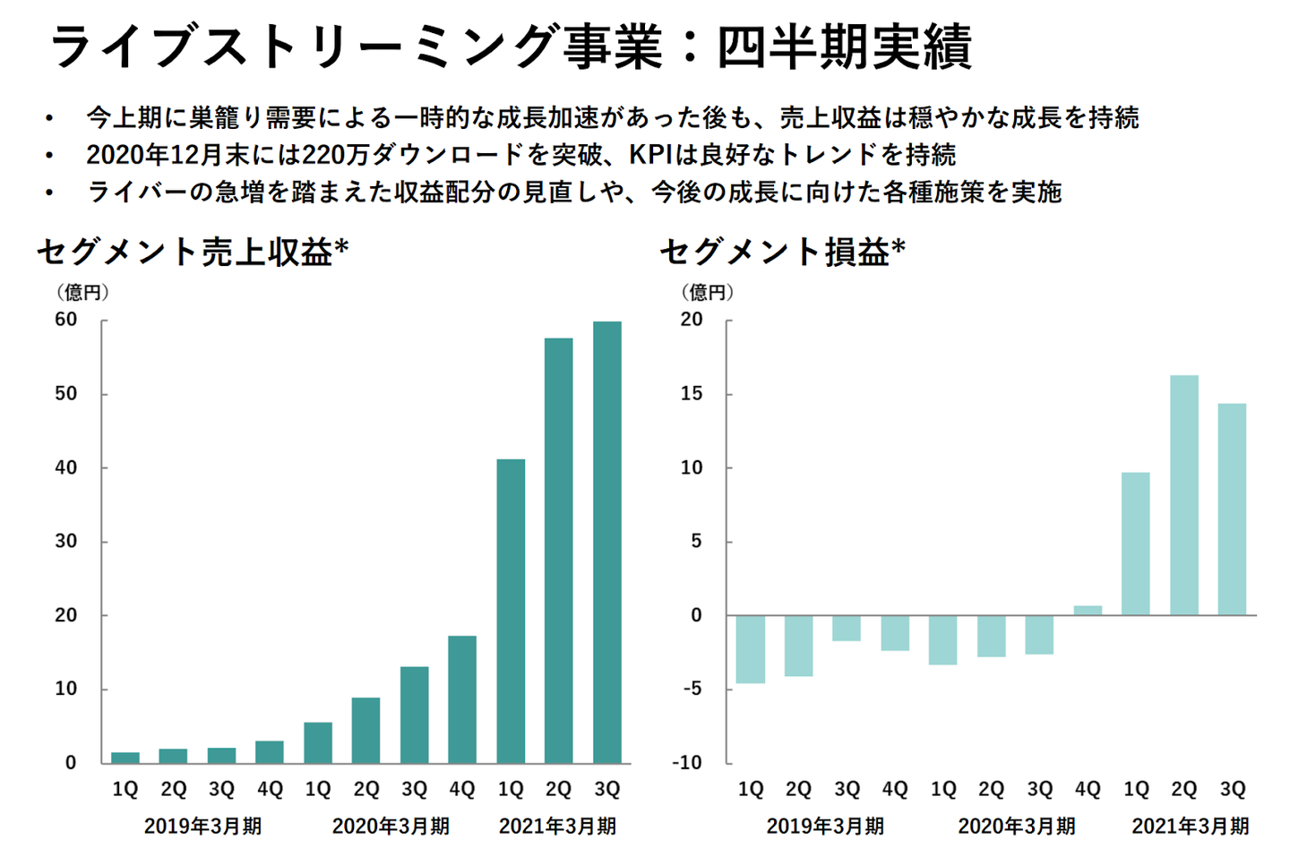 下記はDeNA社のIR資料ですが、ライブ配信事業が急成長していることが分かります。