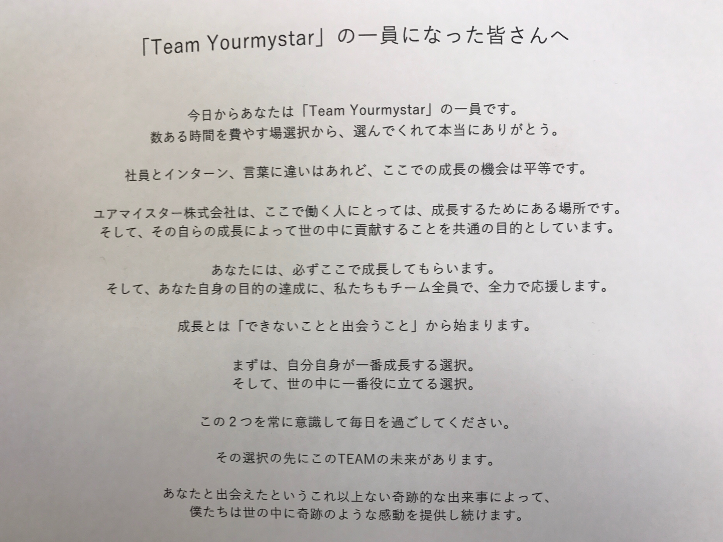 ―ユアマイスター株式会社は、ここで働く人にとっては、成長するためのある場所です。そして、その自らの成長によって世の中に貢献することを共通の目的としています。(一部抜粋)―