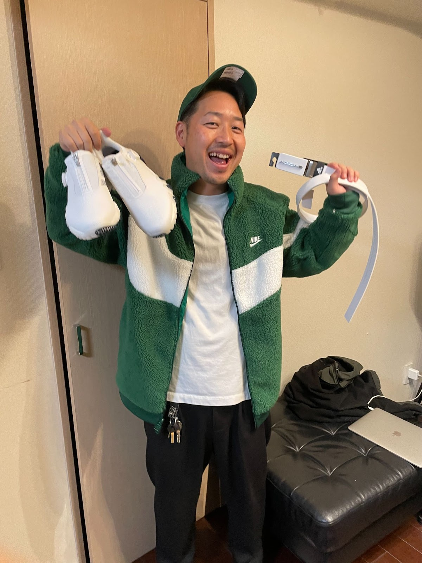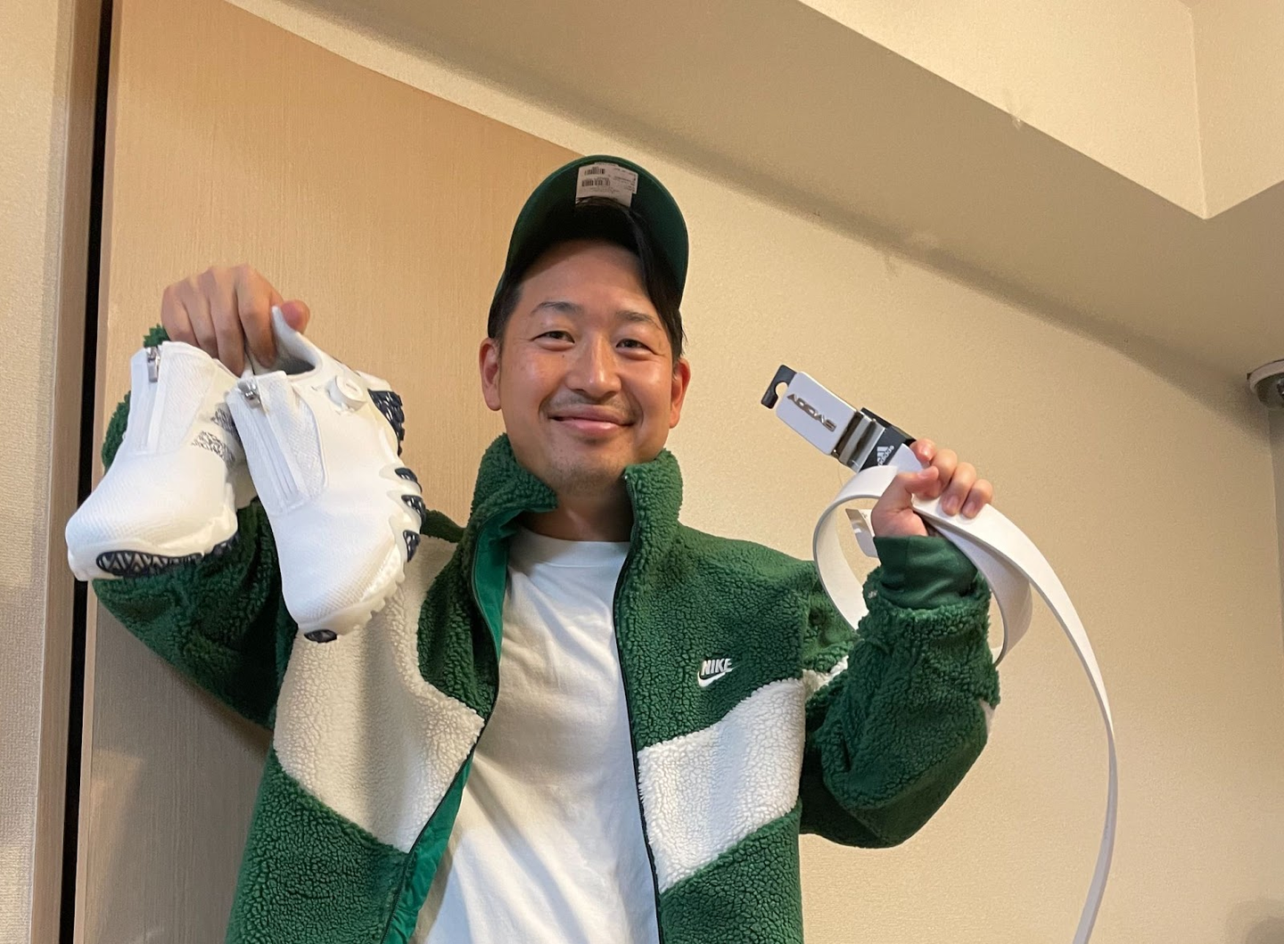 中身はアディダスのゴルフシューズとベルトでした!ぶーちゃんからのプレゼントであるNIKEのキャップとトップスも身につけています!マフラーは大苦戦して、結局完成できなかったとのことでした。マフラーをもらえると思っていただてさんも違ったプレゼントで驚いていましたが、だてさんのことを考えて選ばれたプレゼントに最高の笑顔を見せてくださいました!