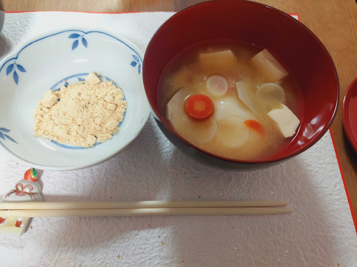 甘い白みそベースのお雑煮は京都、大阪と同様ですが、奈良ではお雑煮に「甘いきなこ」を添えているのが特徴です。丸餅を取り出してきなこに絡めて食べるようです。