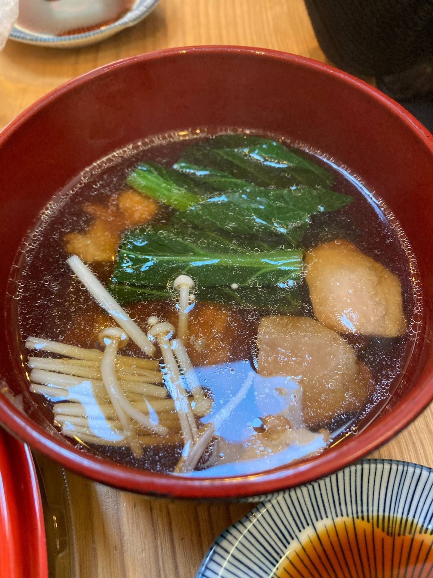 秋田名物比内地鶏を使ったあっさりの鶏出汁に煮餅が入っています。家庭によってはせりなど山菜が入っているようです。