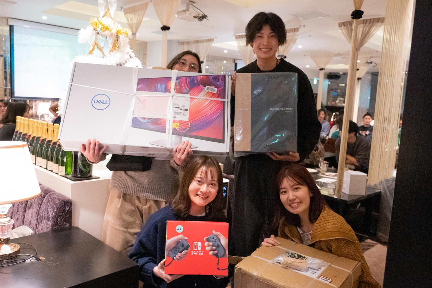いよいよ、恒例のビンゴ大会です!今年の景品は豪華で、特賞は5万円以上の高級ドライヤー!その他にも、人気家電や最新電子機器など、多彩なラインナップが揃いました。