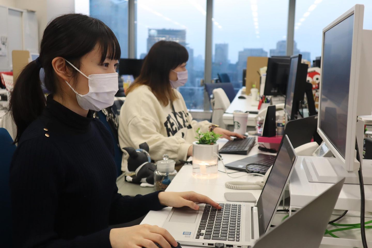状況に応じて、積極的にリモートワークを取り入れています。チャットツール Slackを活用し、メンバーとのコミュニケーションを密にとっているので、仕事もスムーズに運びますよ。