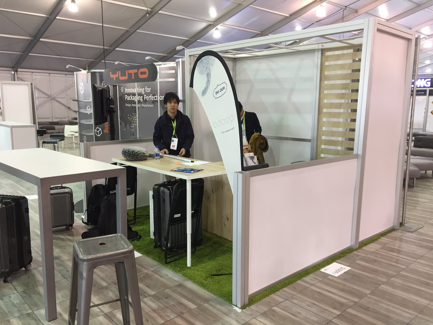 ブースは、LVCCのSouth HallのとなりのDESIGN & SOURCEというテントを入ってすぐでした。早速ロボットの動作確認、壊れていなくて一安心です。宿泊先で最終調整をして、展示に挑みました。