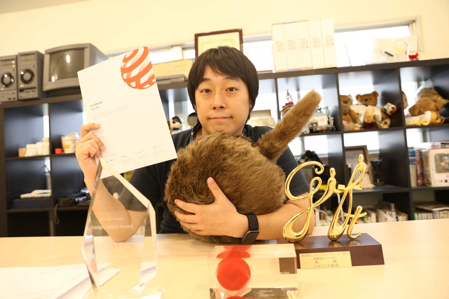 ↑数々の賞を総なめにしてきたQooboを胸に抱く冨永さん